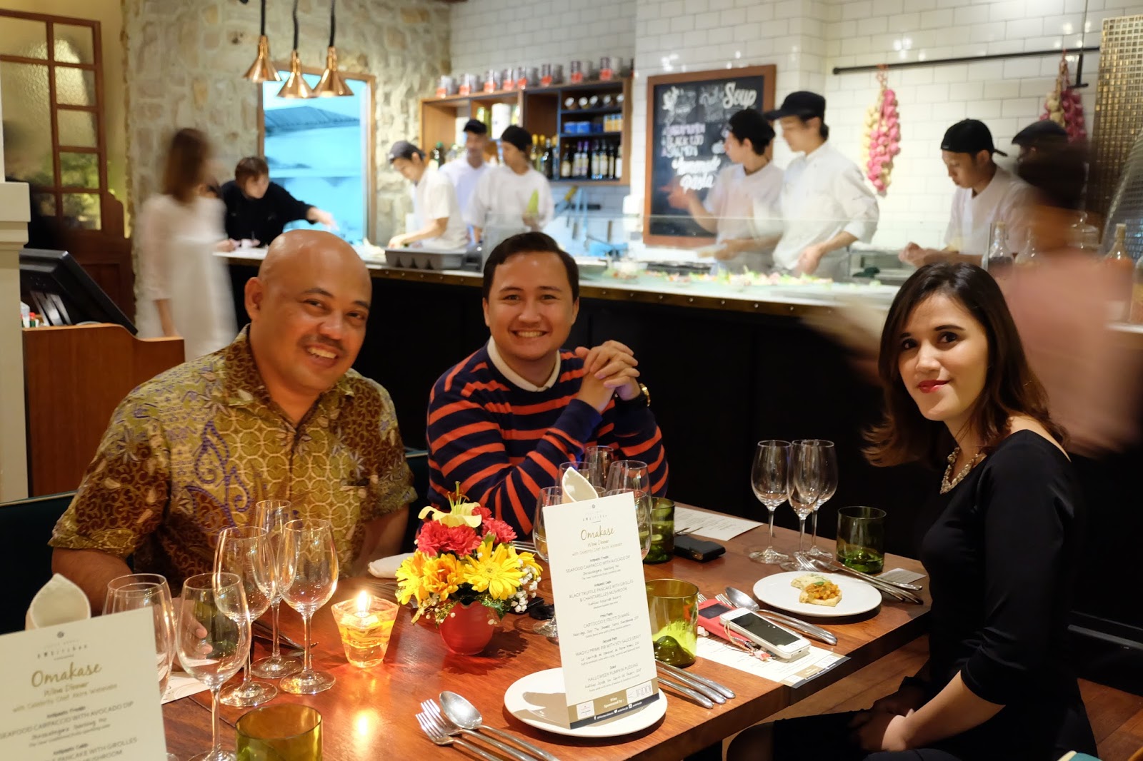 Kembali ke undangan Omakase di atas, yang berlangsung pada Jumat 30 Oktober 2015. Ternyata menu sudah tertera di meja masing-masing. Baiklah, no problemo, toh menu yang “dibocorkan” juga tergolong asing untuk kebanyakan orang Indonesia.