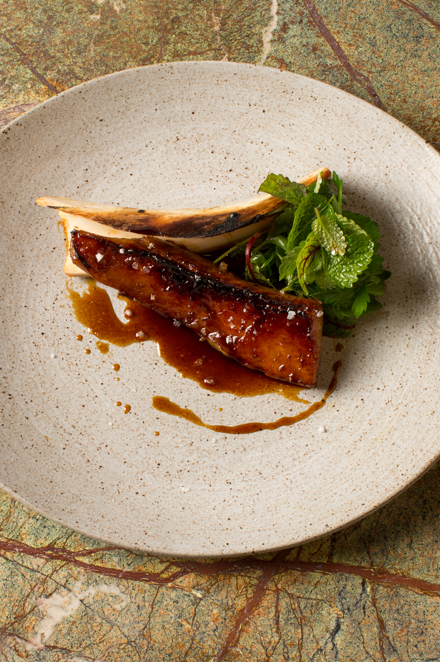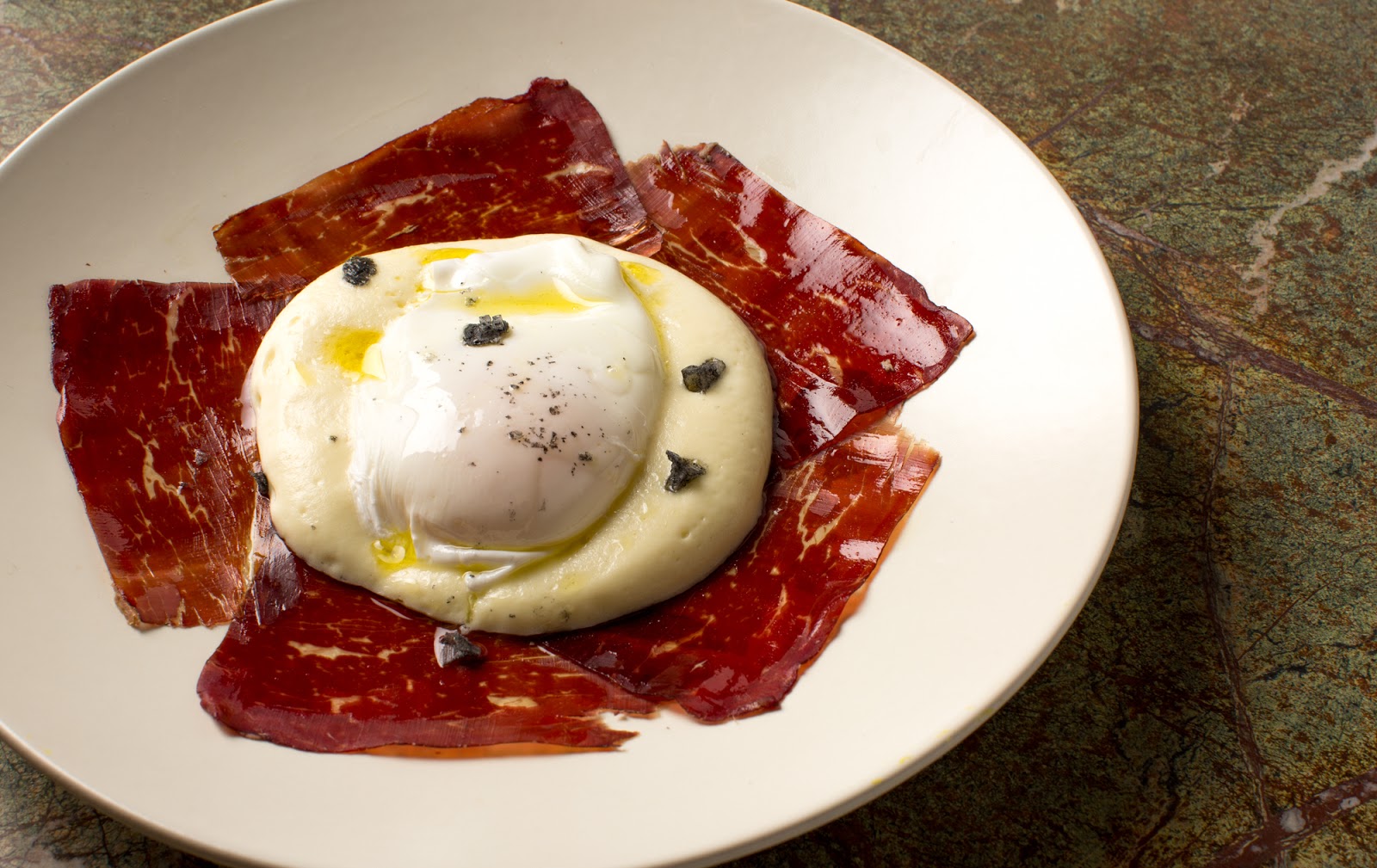 In addition to the gourmet tinned seafood and fine hams imported from Spain, dishes served in the restaurant include Tapas, such as Anchoa (Cantabrian anchovy, crouton, smoked tomato sorbet) and Tartar (Wagyu tartar, whipped roe, sesame crisp); Raciones, such as Bacalao (saffron-battered cod, mojo verde, piquillo pepper), Cecina (air dried beef, truffle foam, poached organic egg) and Arroz (seafood and saffron bisque wet rice); as well as dishes from the Josper oven, including Pescado (whole baked halibut with a burnt butter sauce, hazelnuts and capers), Cordero (Central Javanese suckling lamb shoulder with saffron potatoes) and Bistec (Wagyu flank steak, white anchovies and horseradish).