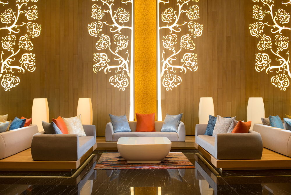 Keramahan para pegawai hotel ini sudah terasa sejak tamu menginjakkan kaki di pintu masuk. Semua awak hotel mengenakan busana batik, sesuai dengan slogan hotel, “Discover A New Authentic” – yang dipertegas lagi dengan penggunaan interior hotel yang serba etnik Nusantara. Selain artistik, lobi hotel ini sangat luas. Lantai marmernya yang mengkilat memantulkan keindahan dekorasi hotel ini. Lux and beautiful!