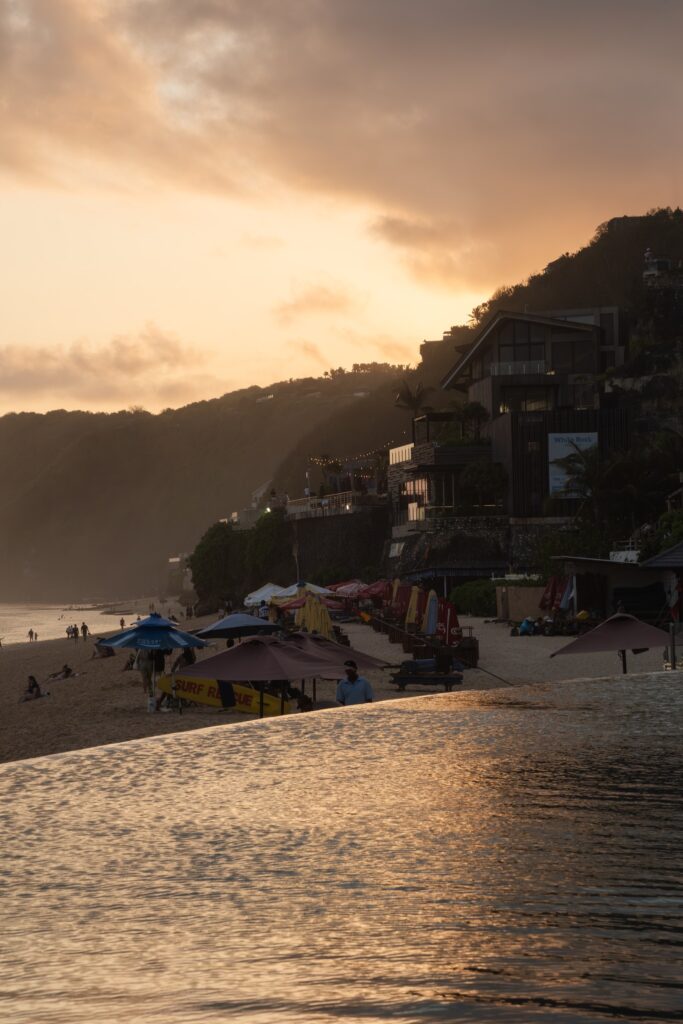 Dan yang bikin beda: ini beach club yang ramah keluarga. Ada infinity pool tepi pantai, cabana, bahkan menu anak. Jadi bukan cuma tempat untuk “lihat dan dilihat”, tapi juga tempat untuk benar-benar menikmati waktu bersama—tanpa harus merasa salah kostum kalau datang bawa anak.
