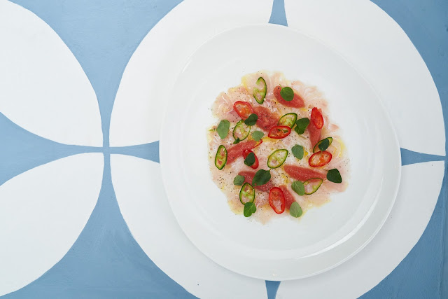 Carl Pickering dari Lazarini Pickering Architects mengedepankan desain yang terinsipirasi dari Pantai Amalfi di era tahun 1960 dengan palet biru putih yang segar dan gaya geometris yang tegas, Design ini merupakan penghargaan bagi designer asal Italia, Giò Ponti, yang menciptakan Sorrento hotel il Parco dei Principi di tahun 1960 – hotel desain pertama yang diciptakan – di mana ia merancang segalanya, termasuk desainn lantai yang indah.